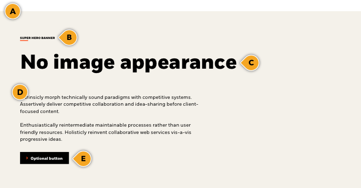 If your content requires an X-large headline but does not require an image, this is an option. It also allows for introductory copy and a CTA option. It has the same options as our “image” appearance, but without the image.