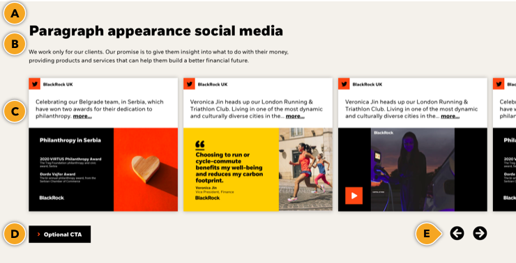 The social media component is designed to dynamically pull in the most recent content from our BlackRock social media channels - Twitter and Instagram.