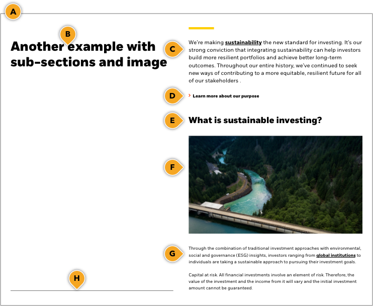 The Content block component was created to offer an alternative 2-column layout option to our standard 1-column paragraph appearances. This allows the headline and introduction to the page content to stand out more, with the content indented down the page.