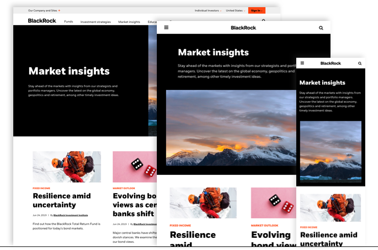 At BlackRock, we currently design all of our components using full-page layouts. The advantage of this is that for the CMS user they simply drop in full-with components and don’t need to worry about the horizontal placement.