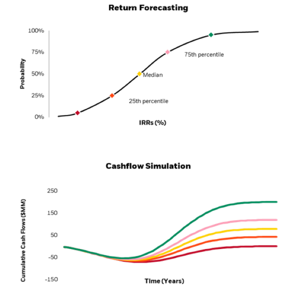 Our team will use a risk modeling framework – based on economic risk factors – to design your private markets portfolio.